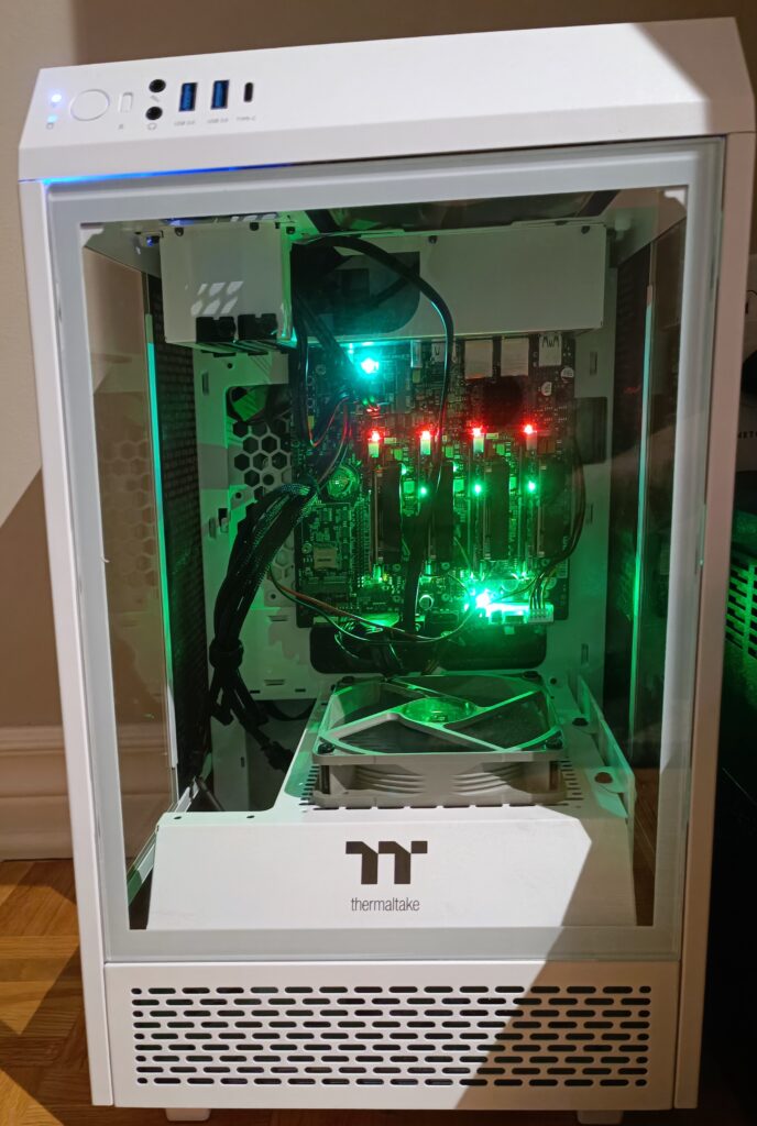 Enfin pour conclure le montage de ce cluster Turing Pi, nous pouvons placer la carte avec ses nodes dans son plus bel habillage pour lui rendre un hommage tout particulier.